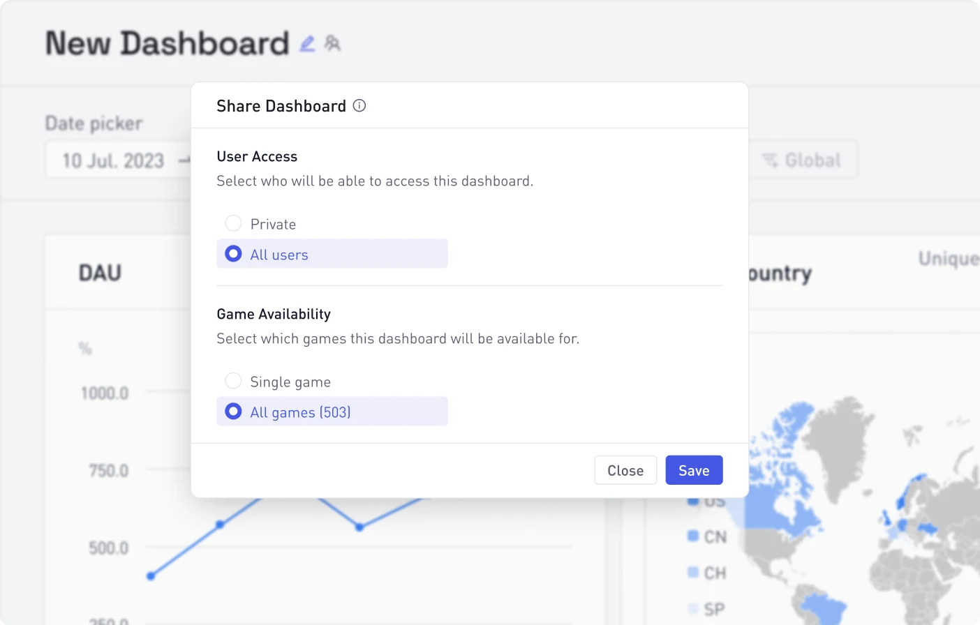 No more duplicating dashboards. You can now share dashboards across all games in your entire organization, making sure everyone - from product to marketing - has immediate access to the insights they need.