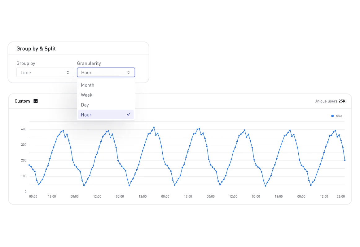 Drill deeper into your data. Analyze trends with hourly precision to identify short-term spikes, player activity patterns, and time-sensitive changes in performance.