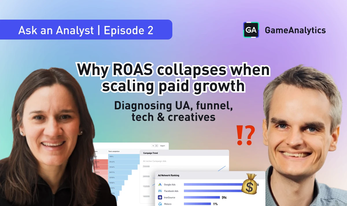 In Episode 2 of Ask an Analyst, Allison Bilas (COO, GameAnalytics) and growth consultant Sven Jürgens unpack a common problem many studios face: ROAS that collapses quickly when trying to scale paid growth.