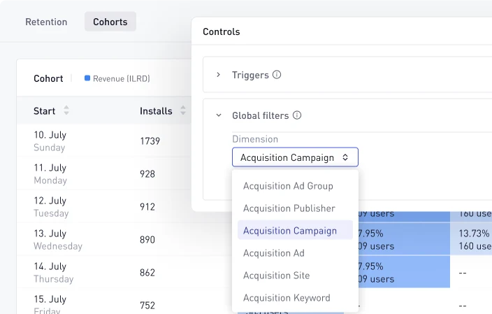 Identify which campaigns bring in high-quality players. Use Cohorts to compare retention, LTV and monetization by source, so you can focus spend where it matters most.
